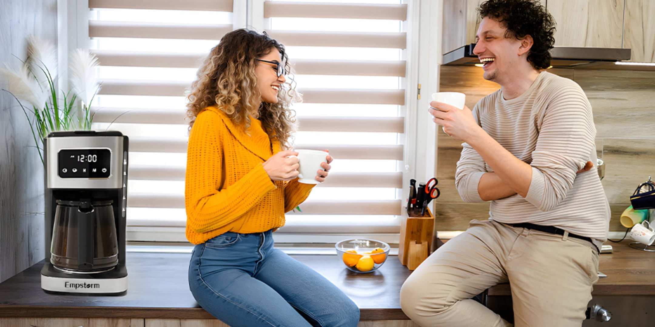 • 24 Hour Programmable Drip Coffee Maker: The office drip coffee machine Empstorm EM-12D comes with a 60 oz. water reservoir that can make 4-12 cups of coffee at a time for home and office use. The coffee maker with programmable timercan be preset with a brew start time, making it convenient to enjoy your coffee anytime.